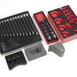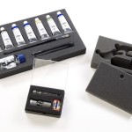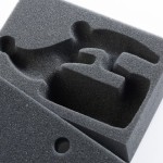 Polyurethanschaumstoffe in den verschiedensten Raumgewichten und Farben können bei uns zu Formteilen bis zu einer maximalen Größe von 1000 x 1000 mm und einer maximalen Tiefe von 150 mm verarbeitet werden. Hier werden die einzelnen Aussparungen nicht nur in der Kontur, sondern auch jede einzelne Aussparung in der für den einzulegenen Artikel benötigten Tiefe angepasst. Verschiedene Artikel können so zusammen in nur einem Schaumstoff-Formteil funktional und/oder repräsentativ sicher eingepackt und geschützt werden.